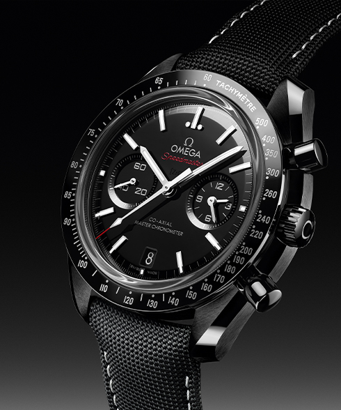 Un modelo íntegramente en negro, con el mecanismo automático Co-Axial Master Chronometer 9900 Black Edition, presenta componentes ennegrecidos, una escala taquimétrica esmaltada y una esfera de cerámica pulida con un chorro de arena mediante láser, con índices biselados pulidos con diamante y rellenos de Super-LumiNova.