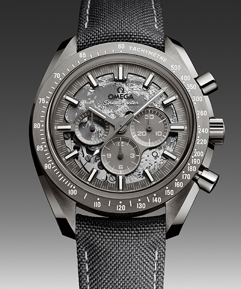 Una reinterpretación del Dark Side of the Moon original, impulsada por el calibre CoAxial Master Chronometer 9900, incorpora una escala taquimétrica en Liquidmetal y una esfera de cerámica refinada con dos pletinas y acabado con cepillado láser, todo en un perfil más delgado.